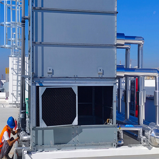 防凍:在寒潮期間,環(huán)境溫度可能會(huì)很低,導(dǎo)致設(shè)備出現(xiàn)凍結(jié)、凝固、析出結(jié)晶等現(xiàn)象。因此,需要確保設(shè)備在寒潮期間保持適當(dāng)?shù)臏囟?,避免超出正常工作溫度區(qū)間,對(duì)于正在使用中的設(shè)備,需要開啟循環(huán)水塔或冰水機(jī)的電輔助加熱功能,配有散熱風(fēng)扇調(diào)節(jié)器的循環(huán)水塔,可以調(diào)節(jié)水塔的散熱扇的開啟溫度,另外,為了降低循環(huán)冷卻水的凝固點(diǎn),可在循環(huán)的水路中添加適量的乙二醇或防凍液,一般按量添加約35%即可。